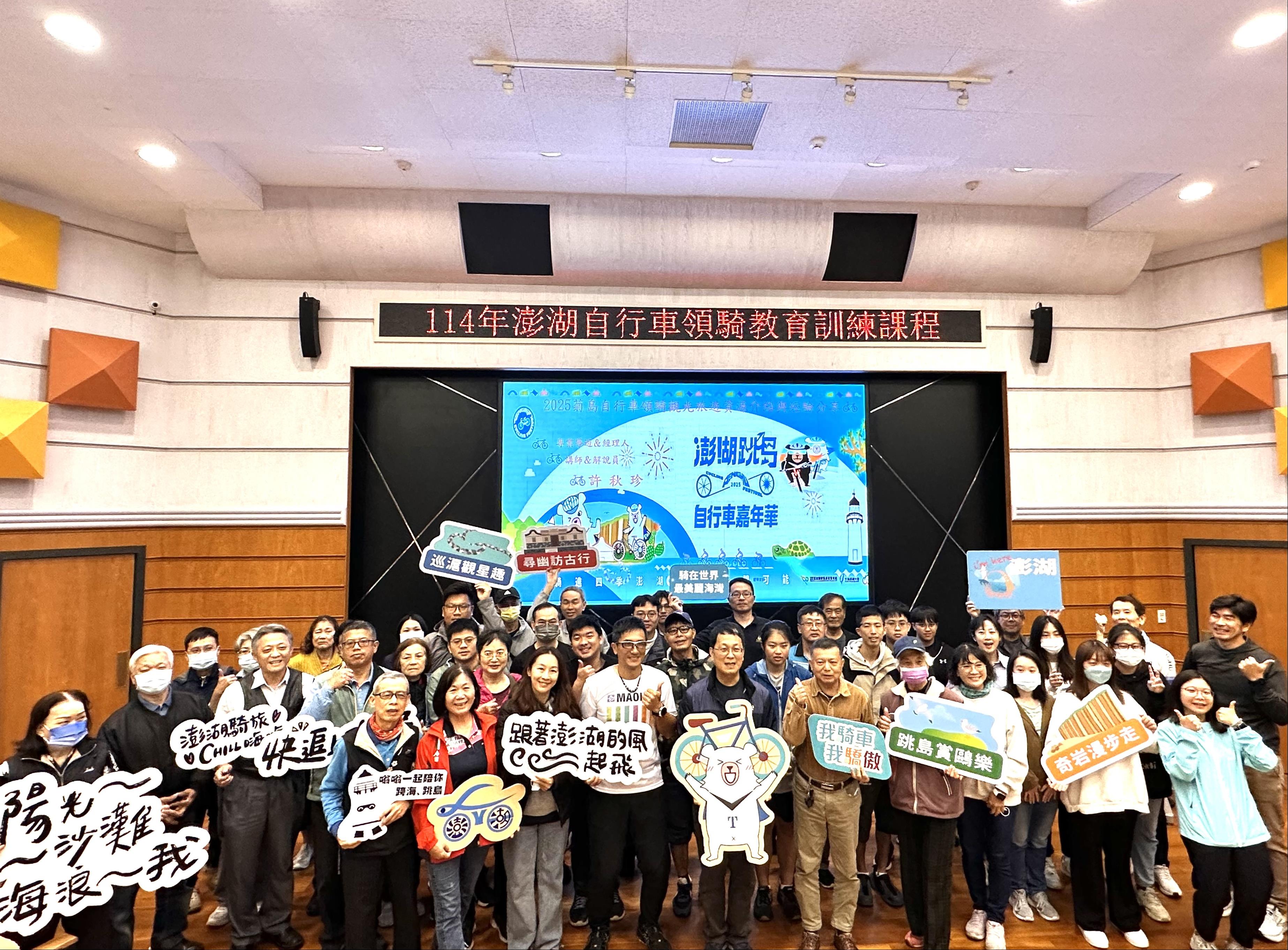 另外,為持續培養專業領騎服務人才,澎管處亦於3月14日(星期六)在國立澎湖科技大學-實驗大樓演講廳,舉辦「領騎服務人員培訓課程」,上午課程邀請資深領騎達人朱英彰老師擔任講師,講授永續旅遊概念應用、領騎遊程設計推廣、智慧化領騎操作、電輔車與自行車保養維修實務(包含活動前整備、日常維護與常見故障排除等),全面強化領騎人員專業知能。下午課程則由澎湖自行車協會與在地資深領騎達人許秋珍老師共同進行實地領騎踩線操作,學員將進行裝備檢查、分組熱身及路線說明,並實際騎乘「馬公人文路線」進行探索實習,讓理論與實務完整接軌,提升帶團應變與現場掌控能力。